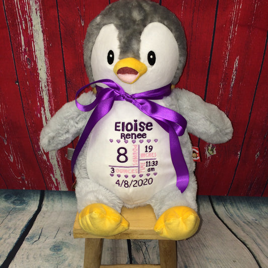 Cubbies™ Signature Collection Grey Penguin Stuffie with Custom Embroidery